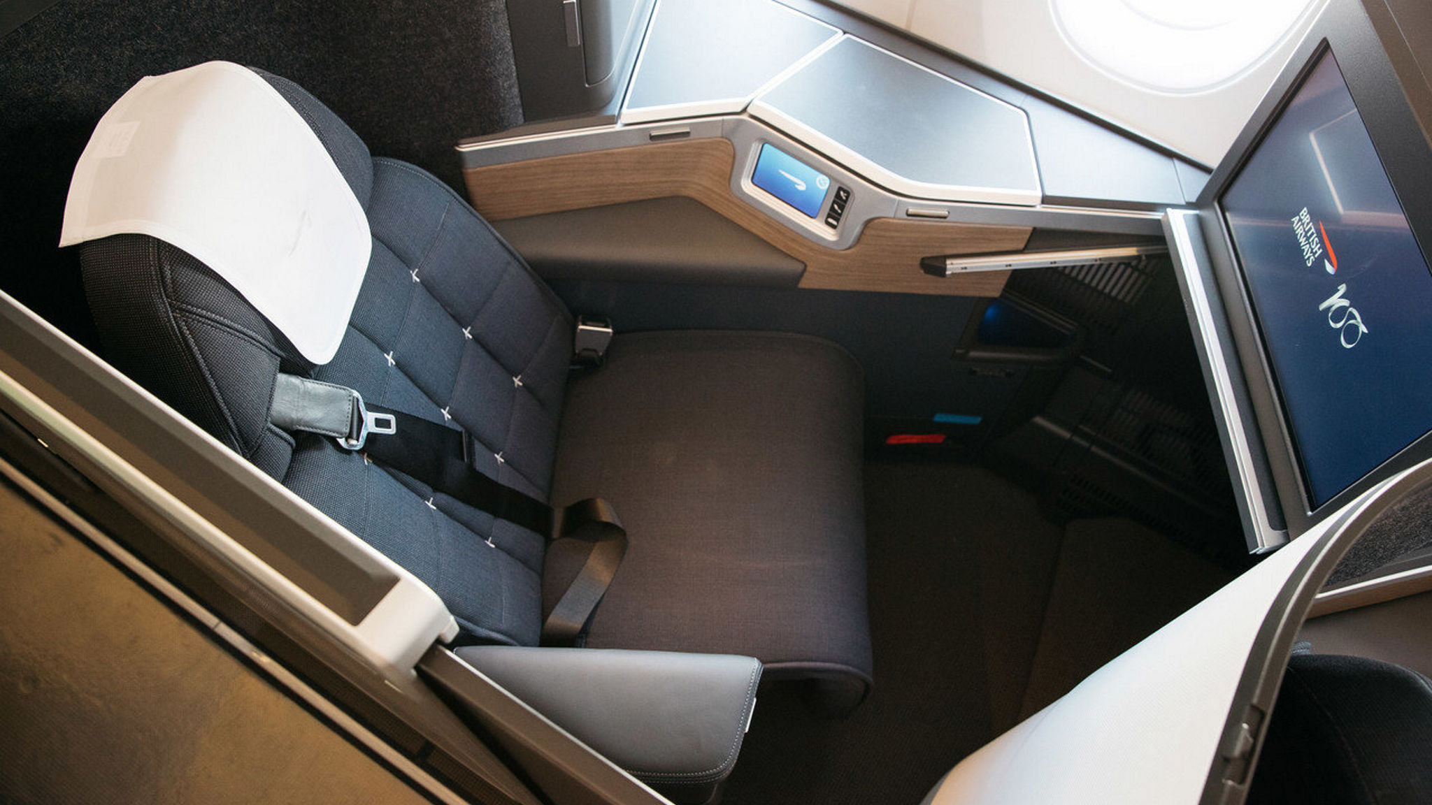 The architecture of the seat protects your head and feet from knocks as people walk down the aisle but the straight configuration leaves you with a slight question of where to put your knees if you sleep in the foetal position. The British Airways A380 Business Class Club World seat is located within its own cocoon or suite. A tailored experience with new tech Club Suite uses technology to make your experience even more comfortable.