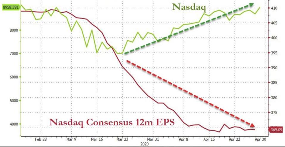 Stock prices keep rising while earnings are falling and that is a sign that a market crash could be coming.